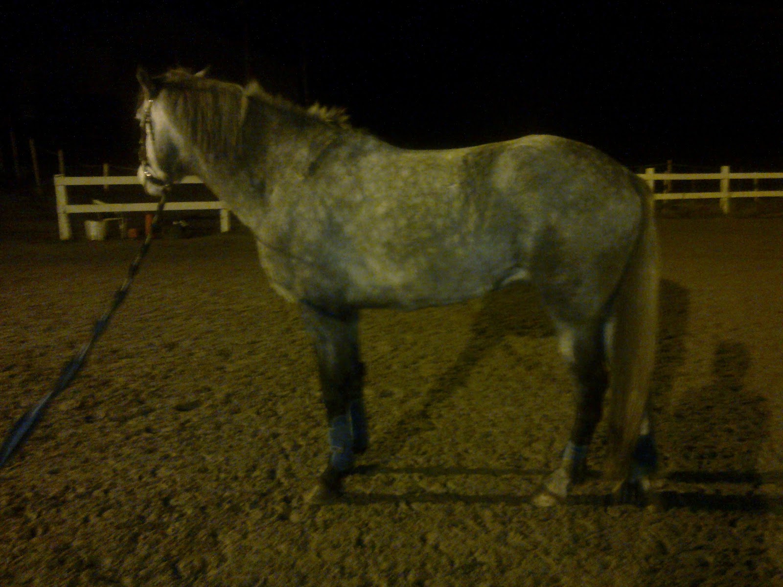 Tänään menin ilman satulaa vähän samantyyppisiä harjoituksia, eli laukkakokoamisia. Voin myöntää että tein virheen kun en ottanut satulaa, sillä Esteri oli vasempaan suuntaan hyvin hankala ja satulan kanssa se olisi ollut paljon helpompaa. No, virheistä oppii! Ensi kerralla otan satulan kun tähtään enempään laukkatyöskentelyyn. Ekaksi tehtäväksi otin ympyrällä käynnissä asetukset eri suuntiin, ja sitten kun asetus oli sisäänpäin, pysäytin. Annoin taas ihan löysää ohjista ja Esteri malttoi seistä hienosti. Sitten tein suoristuksia keskihalkaisijalla käynnissä ja ravissa, ja Esteri meni tosi kivasti suoraan. :) Mutta kun alettiin tekemään laukkaa, poni taas kuumui hurjasti ja ilman satulaa siellä oli hiukka hankala pysyä ja olla häiritsemättä Esterin työskentelyä. Oikeaan suuntaan Esteri meni tosi hyvin neliötä kaikissa askellajeissa ja kokosi itseään hyvin kulmissa, mutta vasen kierros meni aivan plörinäksi... Kun itseä alkoi raivostuttamaan ihan kamalasti kun Esteri ei yhtään edes taipunut tai asettunut, muistin Kyran kirjasta ohjeet, että tehtävä pitää muuttaa helpommaksi jos se tuottaa ongelmia. No, minäpä muutin sitä ihan kunnolla helpommaksi! Siirsin käyntiin ja pysäytin aina ennen kulmaa. Jos Esteri ei halunnut taipua hyvin, tein voltin kulmaan. Sitten kun käynnissä kaikki sujui hyvin, menin neliön sivut ravissa ja kulmat käynnissä. Sitten siirsin kokonaan raviin, ja kun ravissa sujui, nostin laukan. Nyt sujui jo paljon paremmin! Ravasin sitten loppuravit ja kävelytin loppukäynnit maasta käsin.